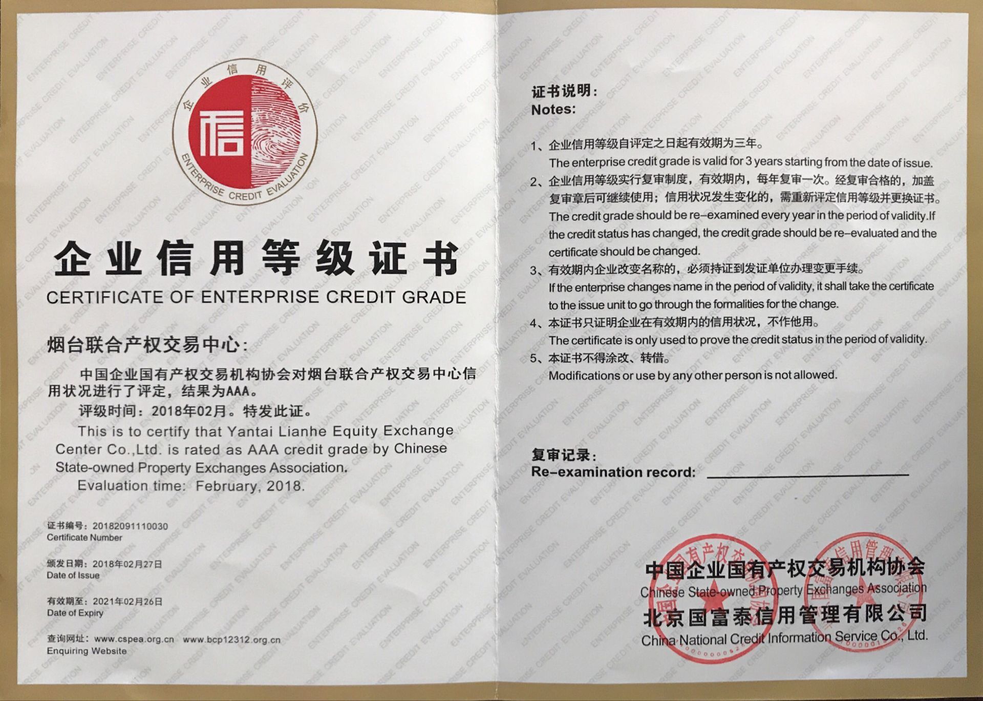 近日,在中國產(chǎn)權(quán)交易協(xié)會組織開展的全國產(chǎn)權(quán)交易行業(yè)信用等級評價活動中,煙臺聯(lián)合產(chǎn)權(quán)交易中心(以下簡稱“聯(lián)合產(chǎn)權(quán)”)榮獲信用最高等級AAA級信用企業(yè)稱號。
