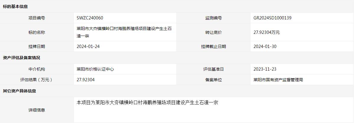 - 轉(zhuǎn)讓方:萊陽(yáng)市自然資源和規(guī)劃局
