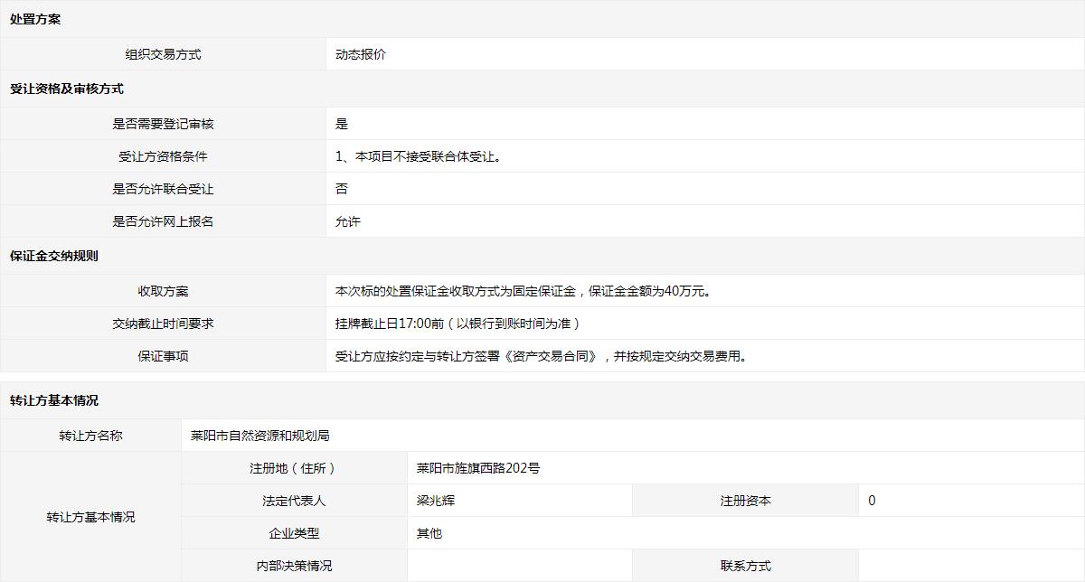 轉讓方:萊陽市自然資源和規(guī)劃局