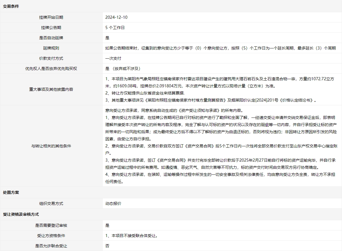 • 掛牌起止日期:2024年12月10日至2024年12月23日