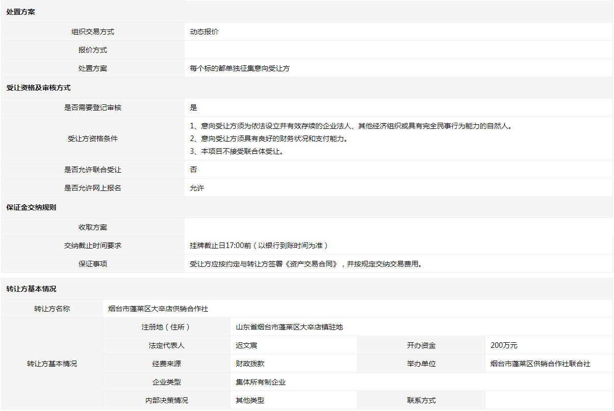 轉(zhuǎn)讓方:煙臺(tái)市蓬萊區(qū)大辛店供銷合作社